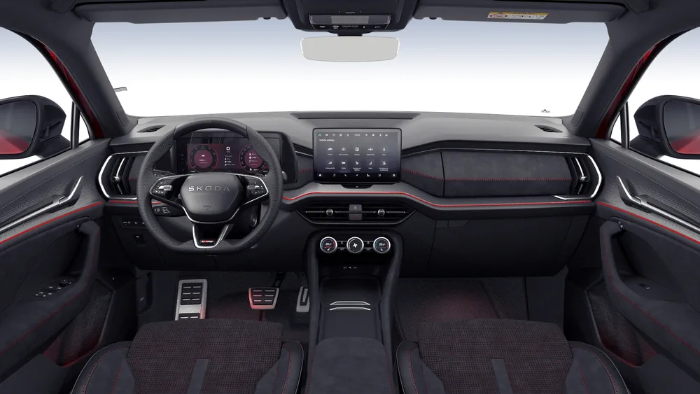 - Interjöör RS Lounge: sportistmed ees, musta värvi istmekatted punaste õmblustega, nahk/Suedia, musta värvi lagi (ES)