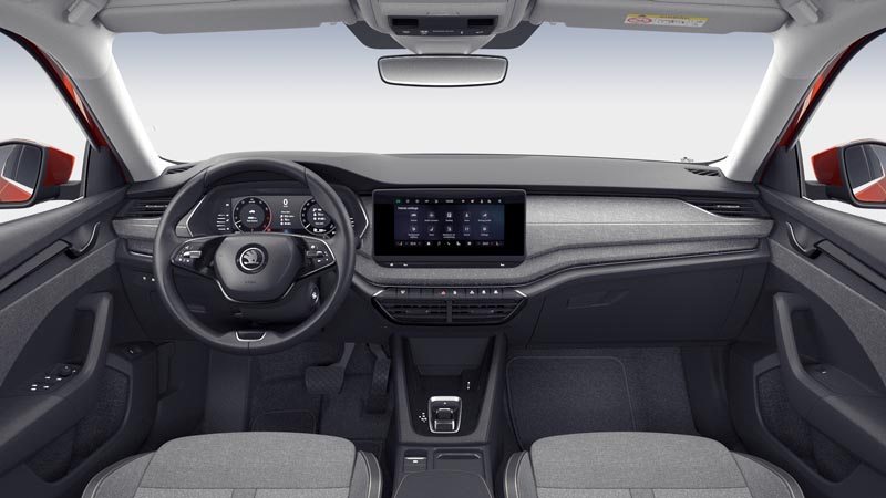 WD2 - Interjöör Lodge: istmekatted hallist tekstiilist ja mustast kunstnahast, salongi LED-valgustuse pakett (valgustusega jalaruum ees ning dekoratiivliistudes, Škoda logo projektsioon), tagaistme seljatugi pagasiruumist alla klapitav; interjöörikood NE